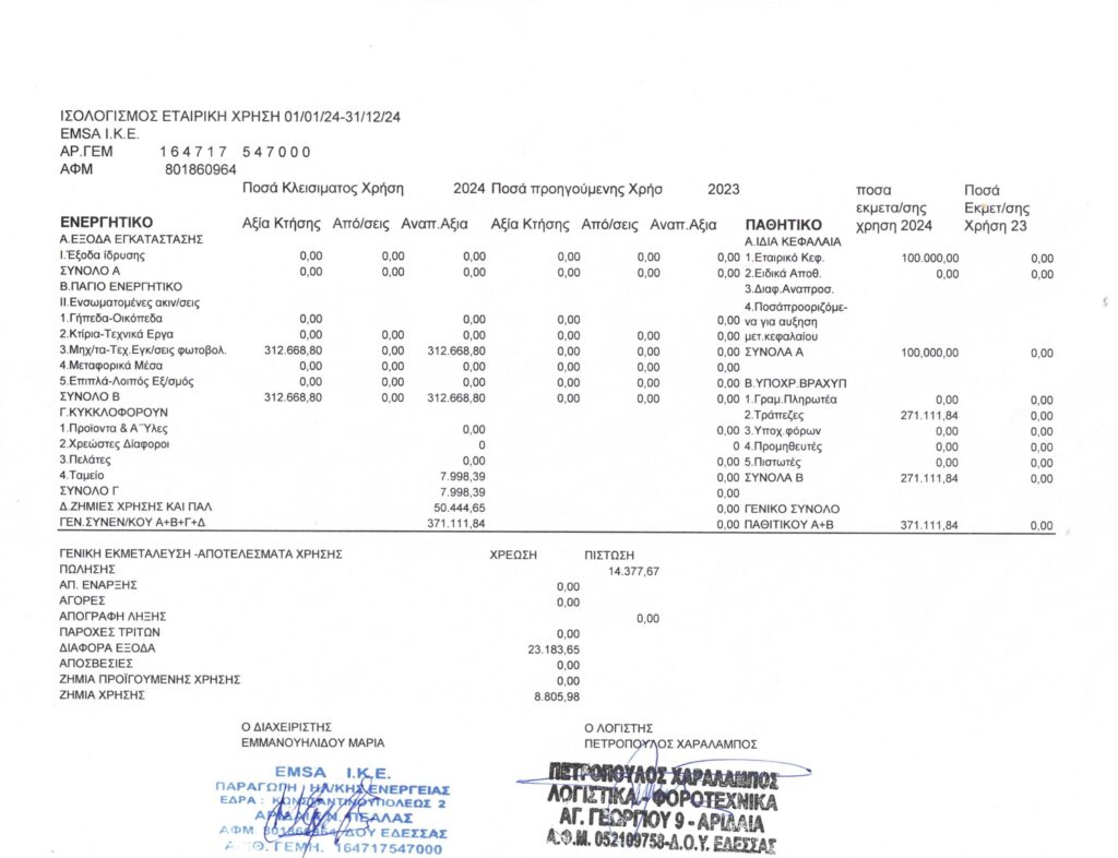 Παρακάτω παρουσιάζεται ο ισολογισμός της εταιρείας «EMSA Ι.Κ.Ε.» σύμφωνα με τις διατάξεις του Νόμου: